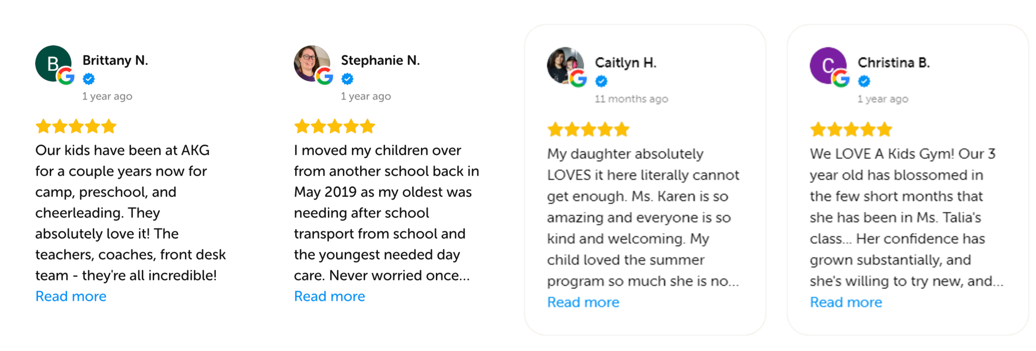 Every child enjoys a weekly gym class, with an additional 30 minutes of gym time every Friday. These activities promote physical health, teamwork, and confidence, keeping your child active and engaged while having fun.