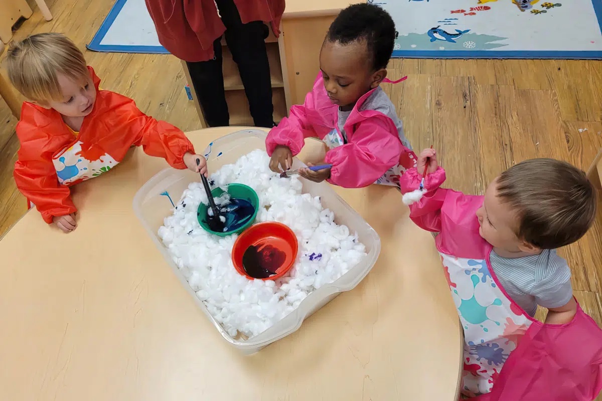 Children thrive in our nurturing environment where active play, structured routines, and purposeful teaching come together to build confidence, independence, and a lifelong love of learning. Each classroom is guided by experienced educators who understand how to meet children where they are while encouraging them to explore, discover, and achieve new milestones.